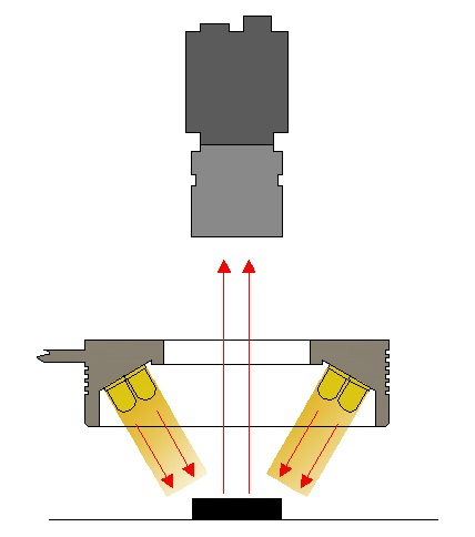 環(huán)形光源由高亮LED陣列特殊設(shè)計而成,光源角度以中心垂直線為基準(zhǔn),提供多種不同照射角度選擇,適應(yīng)于檢測物體的邊緣清晰特征,突出感興趣的被測物體信息,解決對角照射陰影問題。